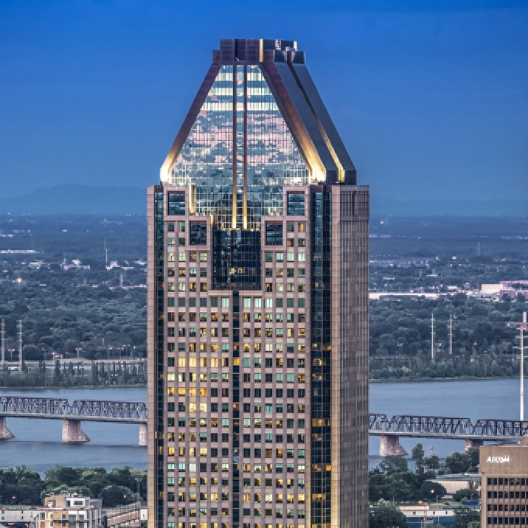 Avec ses accents cuivrés et son sommet triangulaire très distinctif, Le 1000 De La Gauchetière est incontournable en matière d’architecture postmoderne. D’une sobriété à la fois élégante et chaleureuse, il a été conçu par les firmes Lemay & Associés et Dimakopoulos & Associés. Véritable fleuron architectural, l’immeuble de 51 étages imprègne notre paysage urbain d’une signature aussi unique que distinguée. Il s’intègre harmonieusement aux immeubles et au patrimoine historique qui l’entoure, et s’est rapidement imposé comme étant la référence en matière d’édifices de prestige à Montréal. Aucun effort, depuis, n’a été épargné pour lui permettre de conserver son titre.
